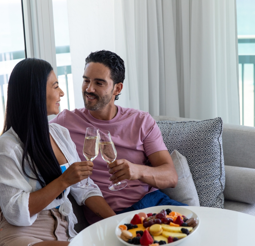 Unwind and dine in the comfort of your private beachside retreat. Raise a glass in celebration with a special occasion delivery of champagne, chocolates, fruit plates, charcuterie, and more.